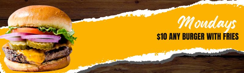 $10 any Burger with Fries. No substitution for Fries. Available for online ordering only.