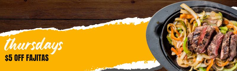 Available for dine in & to go. Mix and match between Chicken, Steak, or Shrimp Fajitas.