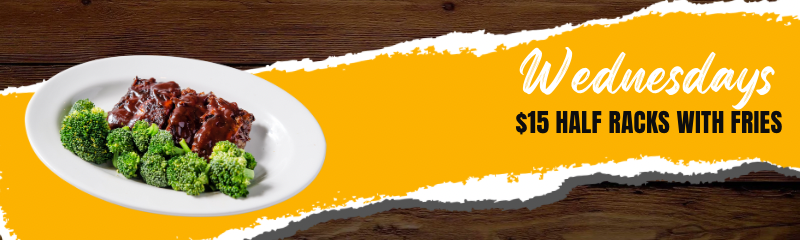 $15 Half Rack of Ribs with Fries. No Substitution for Fries. Available for online ordering only.